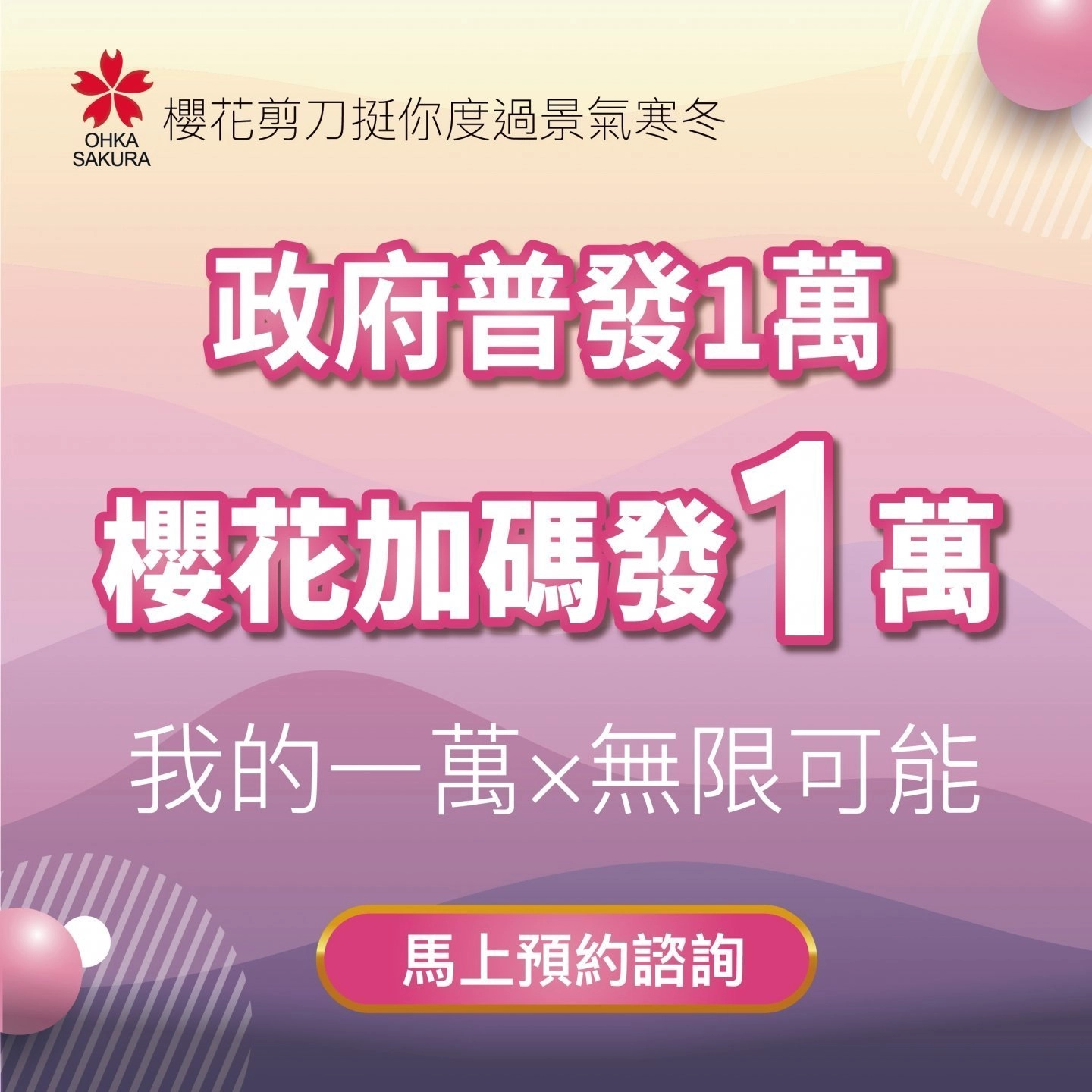 政府普發現金一萬,櫻花加碼普發一萬